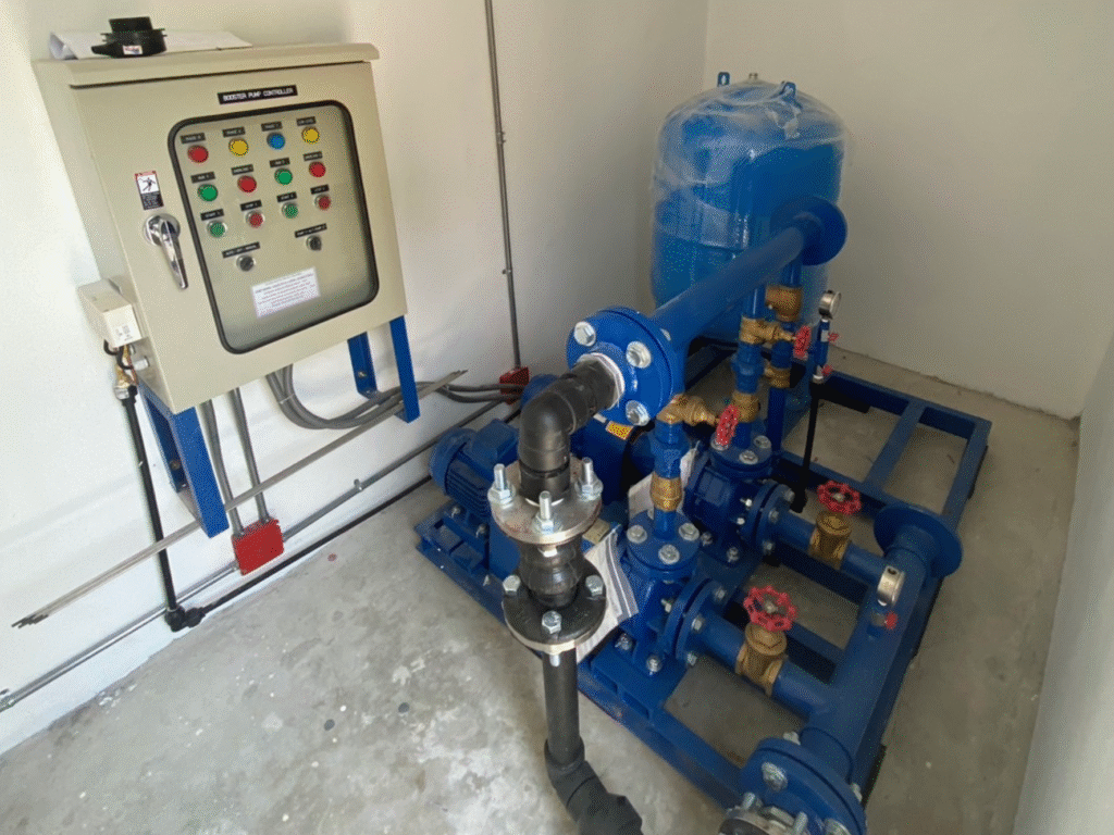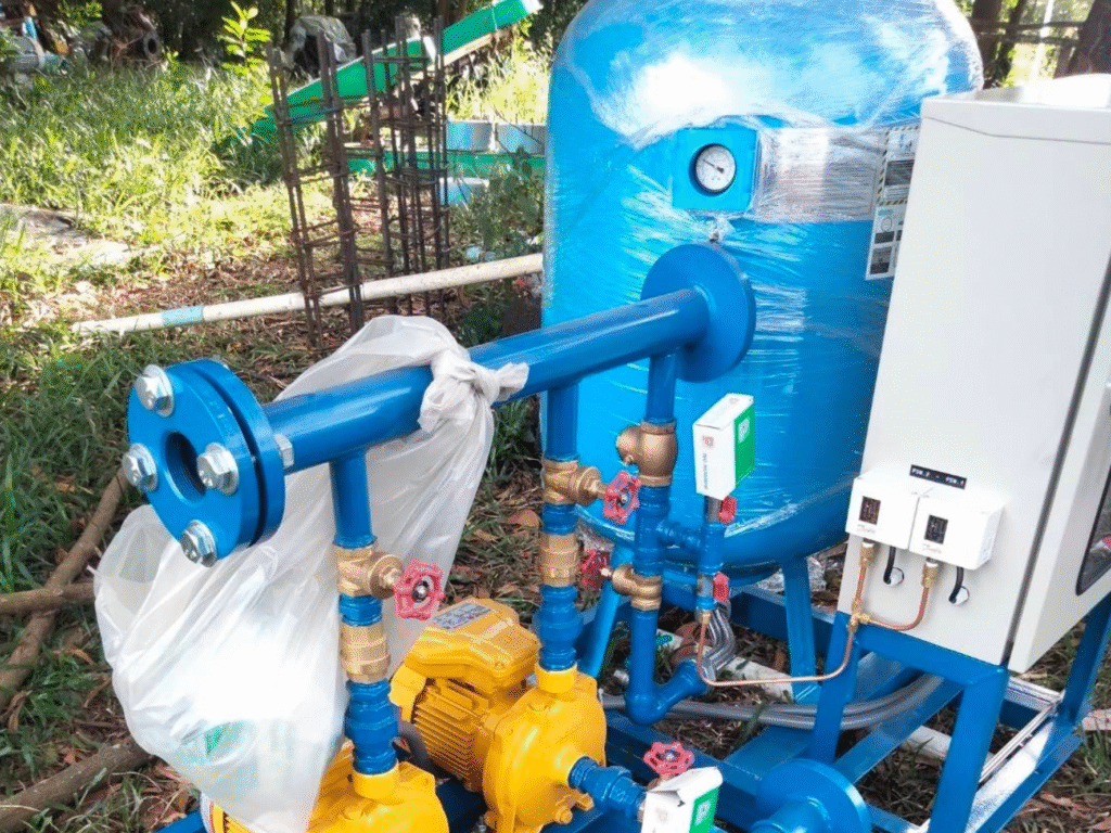 รายงานการติดตั้ง Package booster pump set + Misubishi + Bauman + ถังเก็บน้ำ DOS