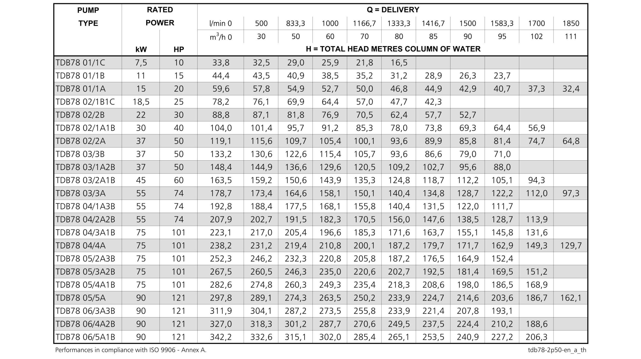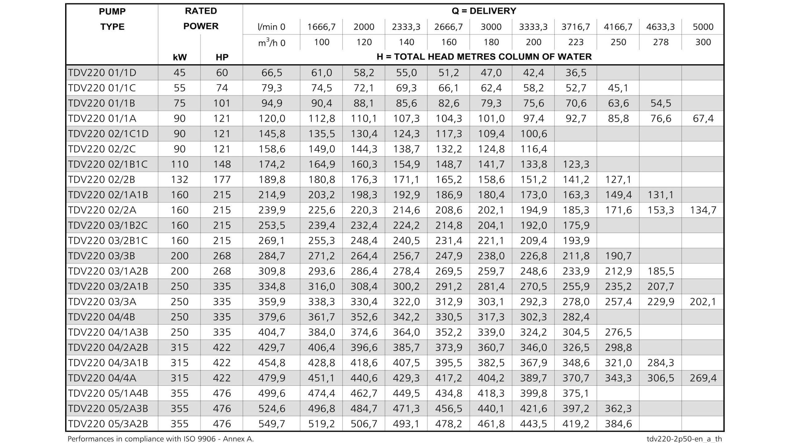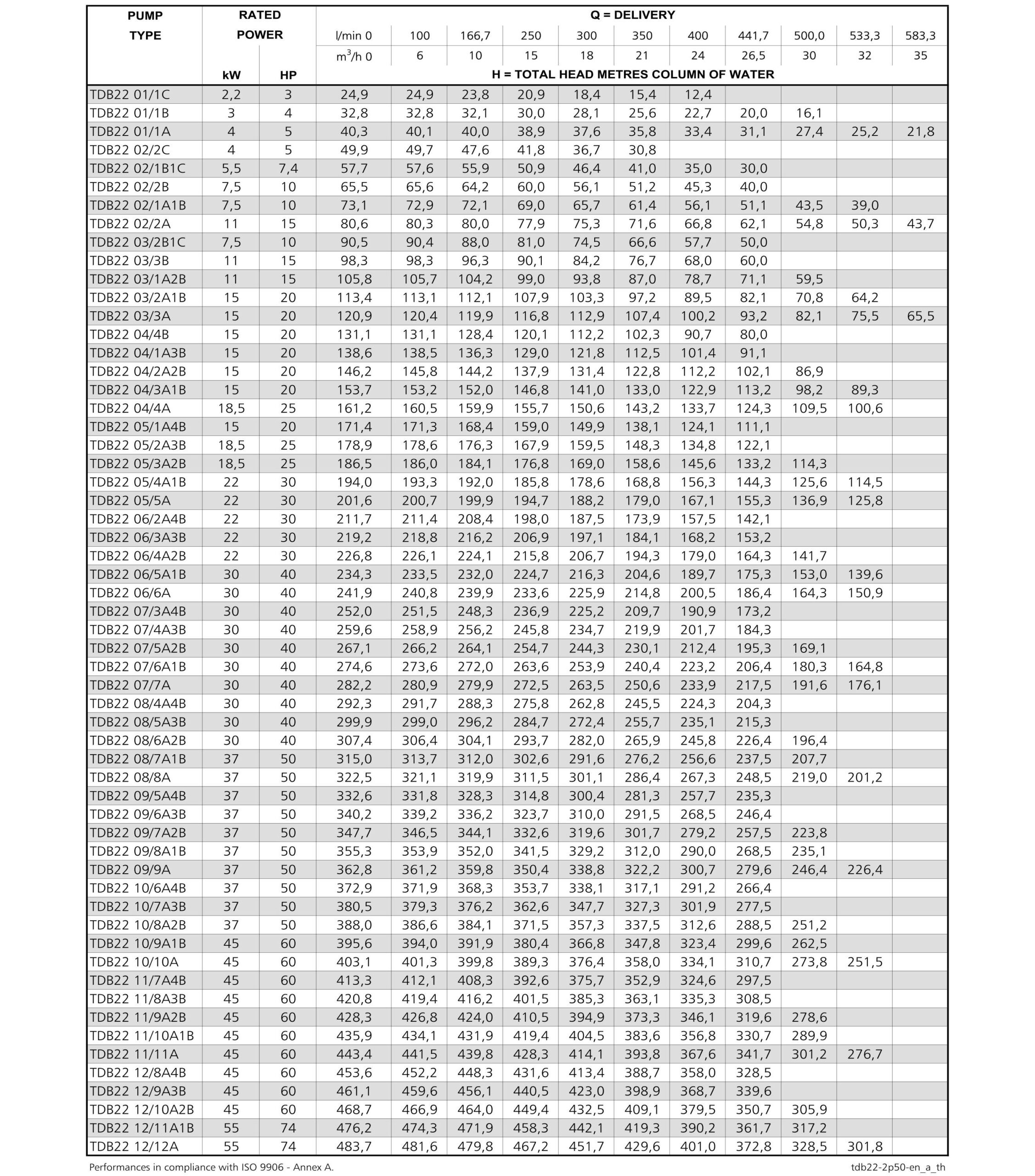 ปั๊ม LOWARA TDB/TDV Series ไฟ 3เฟส เป็นปั๊มไฟฟ้าแนวตั้งหลายขั้นตอนที่ออกแบบมาเพื่อความน่าเชื่อถือสูงสุด โดยมีการออกแบบให้เหมาะกับการใช้งานที่หลากหลาย ทั้งในรูปแบบวัสดุที่หลากหลาย เช่น เหล็กหล่อและสเตนเลสสตีล หรือเหล็กหล่อที่มีใบพัดทองเหลือง พร้อมให้เลือกหลายขนาดในการไหลตั้งแต่ 22 ถึง 280 m³/h ปั๊มนี้สามารถรองรับการใช้งานที่มีความดันสูงถึง 63 บาร์และอุณหภูมิของน้ำที่สูบได้ถึง 140°C เหมาะกับการใช้งานในหลากหลายอุตสาหกรรมที่ต้องการประสิทธิภาพสูงและความน่าเชื่อถือ
